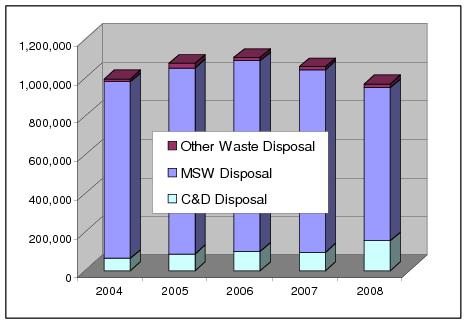 Figure 1-3 Total Disposal at DSWA Facilities, Tons, 2004 – 2008