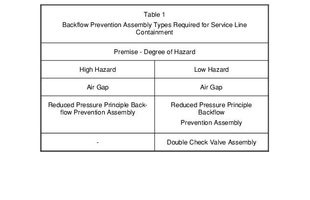 21.2.3 A cross-connection control program shall include appropriate policies to complete assessments of customer premises for potential cross-connections, to establish hazard criteria to classify customer premises consistent with Table 1, and to determine the degree of hazard and adequacy of existing preventive measures.