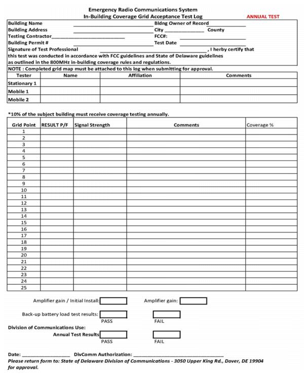 The tester initiating the call from within each grid unit (cell) shall determine the success or failure of the call. Results will be recorded in the GAT log with a pass/fail rating system.