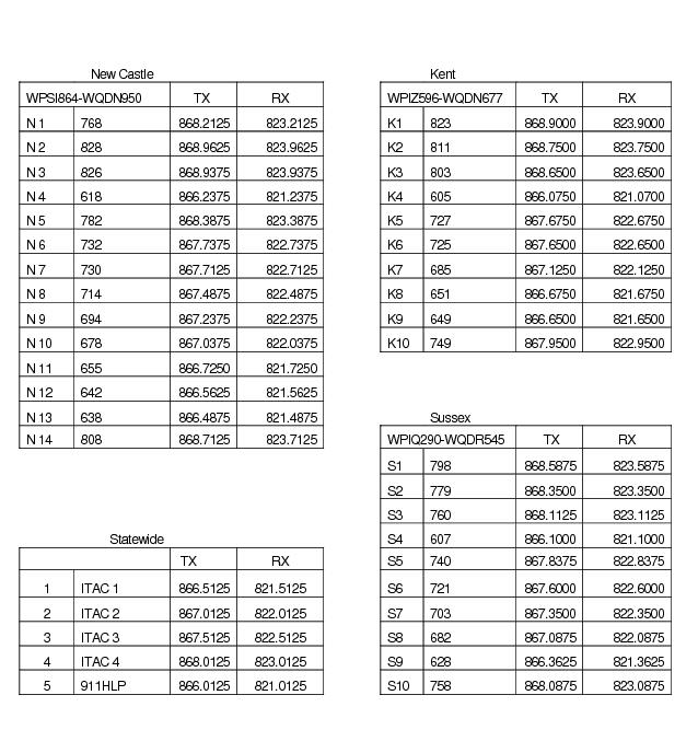 *NOTE – These frequencies are pre rebanding and will change 15MHz once rebanding is complete it is estimated that rebanding in DE will be completed by YE2011.