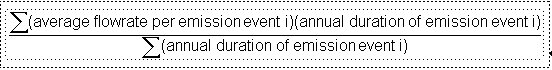 “Average flow rate” means the flow rate averaged over the amount of time that VOCs are emitted during emission events. For the evaluation of average flow rate from an aggregate of sources, the average flow rate is the weighted average of the average flow rates of the emission events and their annual venting time: