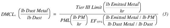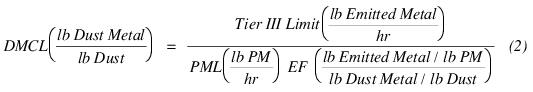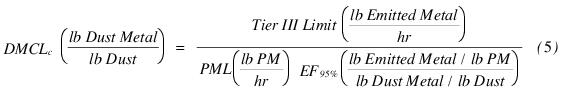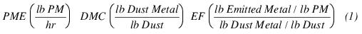 Given these assumptions, metal emissions can be related to the measured concentrations in the collected kiln dust by the following equation:
