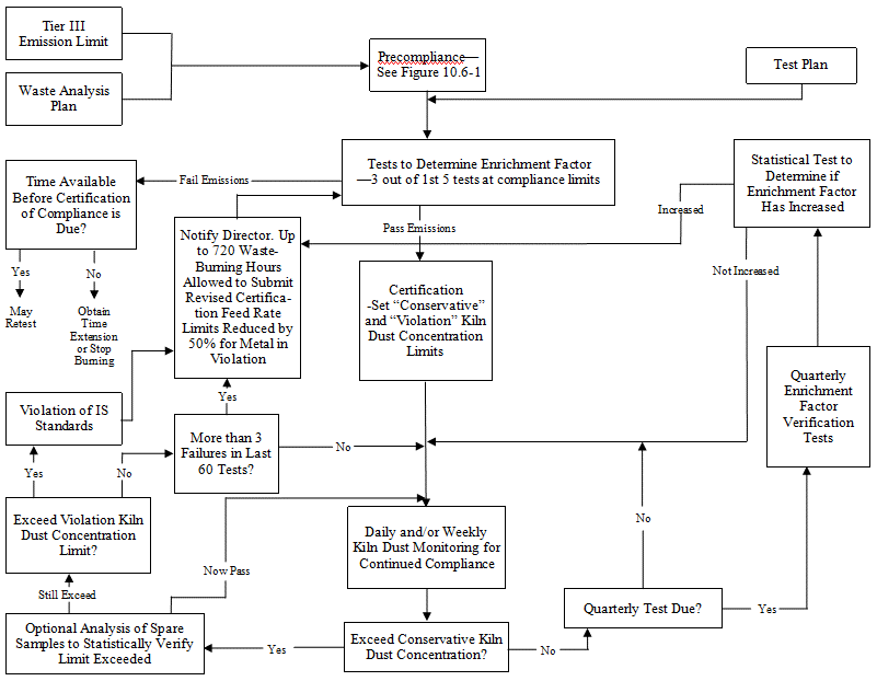 Under this method, cement kilns and other industrial furnaces that recycle emission control residue back into the furnace must comply with a kiln dust concentration limit (i.e., a collected particulate matter (PM) limit) for each metal, as well as limits on the maximum feedrates of each of the metals in: (1) pumpable hazardous waste; and (2) all hazardous waste.