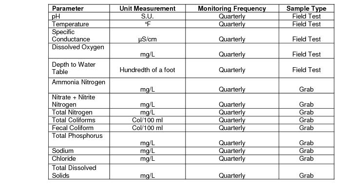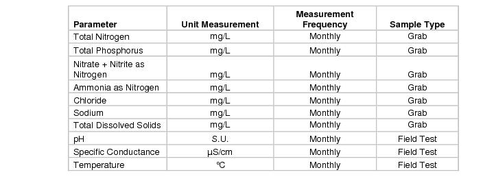 6.11.8.2.2.6 If a perennial stream traverses or lies at the boundary of the farm lands, the wastewater provider will be required to perform water quality monitoring of the stream. Sampling upstream and downstream of the wetted field area as well as flow measurement may be required. The parameters and frequency of monitoring will be specified as a special condition in the facility's operation permit.