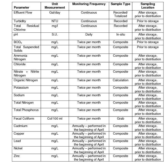 6.11.7.1.1.1 Monthly - The quality and quantity of the treated wastewater provided to each of the recipients on a monthly basis.