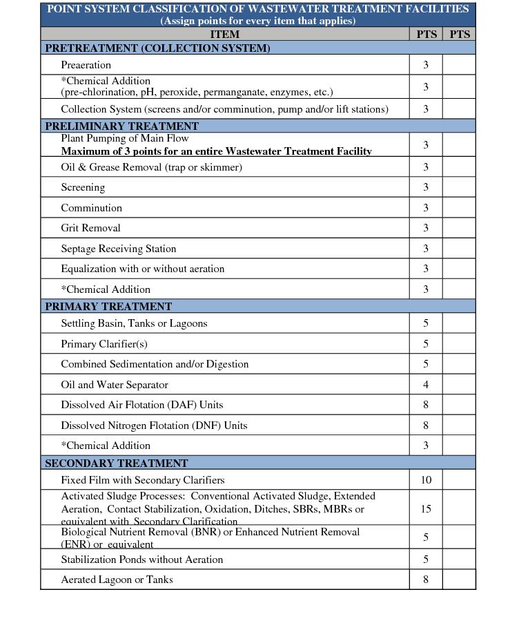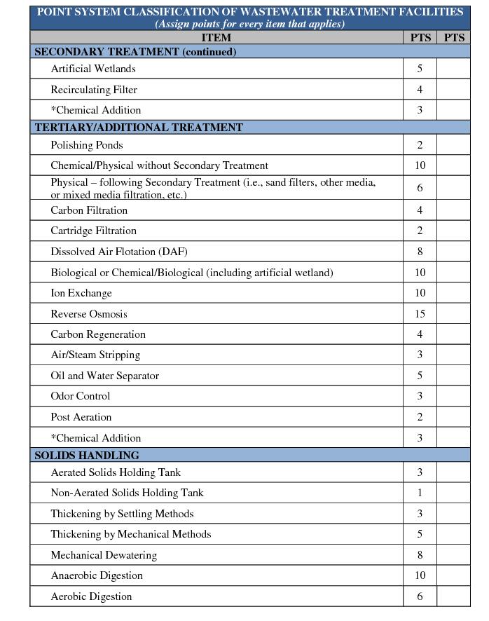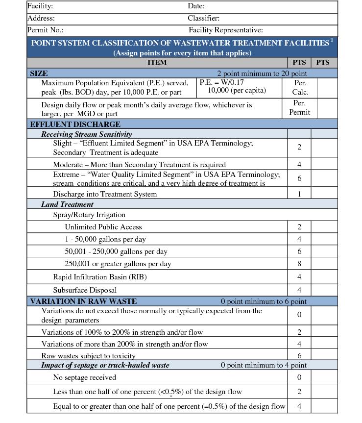 POINT CLASSIFICATION OF WASTEWATER TREATMENT FACILITIES
