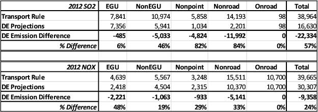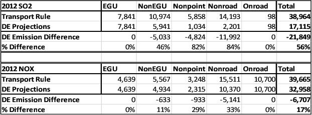DAQ used our 2005 PEI as the base year for the 2012 projections. EPA used the 2005 NEI version 2, 2002 emissions, MOVES and NMIM in the base year, as described above. Because we have shown that EPA’s nonroad and nonpoint emissions are significantly higher for SO2 and NOx in 2005, it follows that EPA’s 2012 projections for those categories would likely be higher too. Table 3 illustrates the magnitude of those differences. Each source sector is discussed afterwards in more detail.