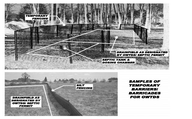 4. If the system is not to be immediately installed then the proposed disposal area should be seeded to prevent erosion. The area should also be roped or barricaded to prevent any vehicular traffic from entering.