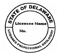 3.1 The stamp or seal authorized by the Delaware State Board of Geologists shall be of the design shown here and shall not be less than one and one-half (1 ½) inches in diameter. It may be purchased by the licensee from any convenient source.