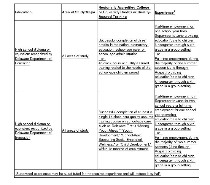 77.3.1 A licensee shall ensure that a school-age site assistant is at least 18 years of age and meets one of the following education and experience qualifications: