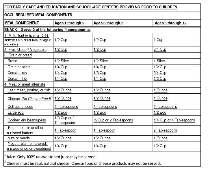80.1 When provided and served by the facility, a licensee shall ensure that at a minimum, a nutritious snack comprised of one age-appropriate serving size item from each of two of the four food groups as described in these regulations is served to each child in after-school care. If milk or 100% juice is not included with a snack provided and served by the center, water shall also be served with that snack.
