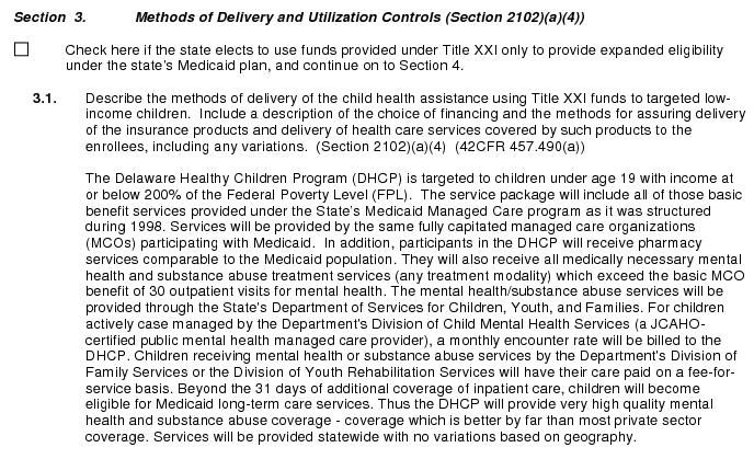 DELAWARE'S HEALTHY CHILDREN'S PLAN