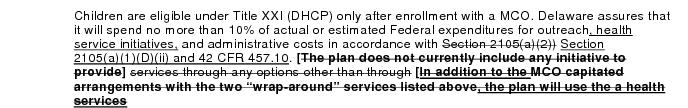 Pursuant to Section 2105(a)(1)(D)(ii) of the Social Security Act, Delaware with use administrative funds to offer health services initiatives under this plan with the goal of improving the health of children, defined as "individual(s) under the age of 19 including the period from conception to birth," per 42 CFR 457.10. Delaware assures that it will use no more than 10% of the total expenditures under this Plan, as specified in 42 CFR 457.618, to fund the State's health service initiatives.