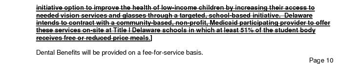 Delaware intends to contract with a non-profit Medicaid participating provider to offer these services on-site at certain Delaware schools. Delaware is currently engaged with Vision to Learn (VTL), which has been serving Delaware children since 2014 and is a certified Medicaid participating provider. VTL is a non-profit, philanthropically-funded entity that provides free eye exams and glasses to students at schools in low-income communities.