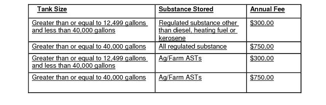 1.2.3.1 ASTs used to store regulated substance other than diesel, kerosene or heating fuel with a capacity greater than 250 gallons and less than 12,499 gallons.