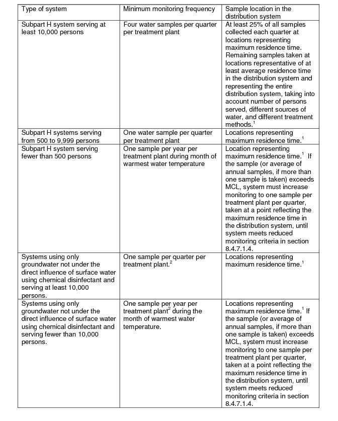 10.8.1.2.3.1 Conduct monitoring for HAA5 that meets the routine monitoring sample number and location requirements for TTHM in 40 CFR 141.12 and 141.30 and handling and analytical method requirements of 61 FR 24368, May 14, 1996. Copies may be obtained from the Office of Drinking Water, to determine the HAA5 annual average and whether the requirements of Section 10.8.2 apply. This monitoring must be completed so that the applicability determination can be made no later than March 16, 2000, or