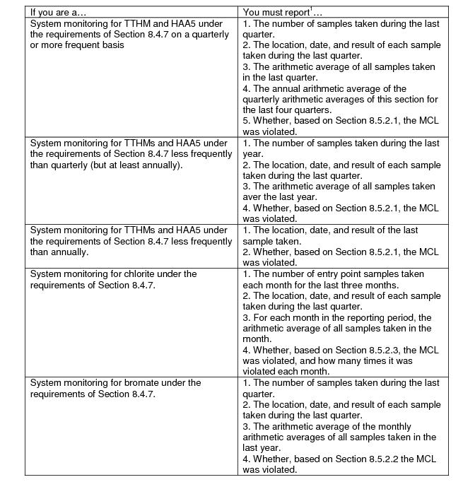 10.11.1 Turbidity measurements as required by section 10.9 must be reported within 10 days after the end of each month the system serves water to the public. Information that must be reported includes: