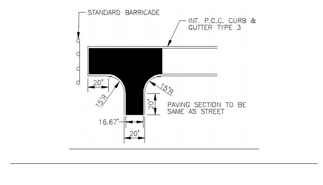 2.4.2 Cul-de-sac - The minimum paved radius of a cul-de-sac is 38 feet.