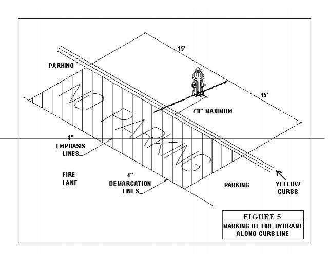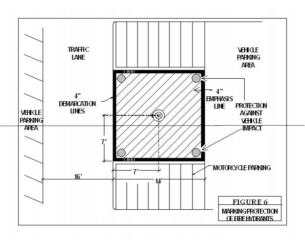 Note: See Figure 6-3 - Marking of Fire Hydrant in Parking Lot