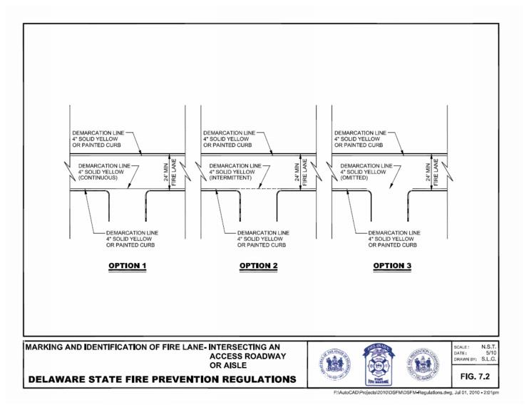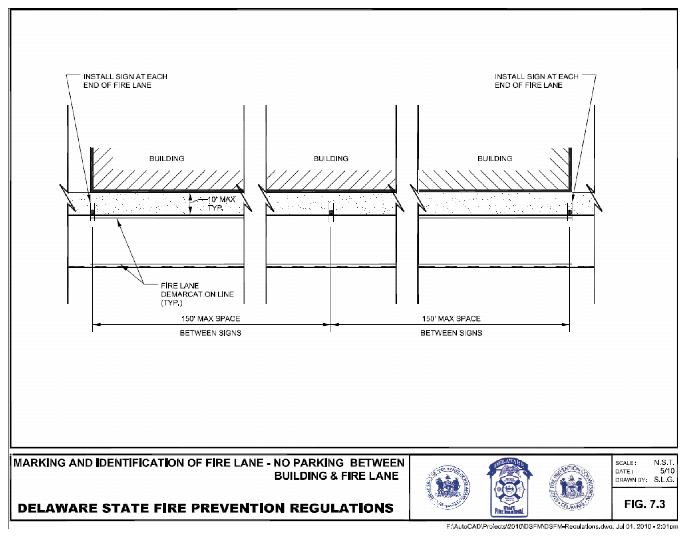 7.7 Where permitted by the State Fire Marshal, a combination of fire lane signs and roadway markings shall be acceptable.
