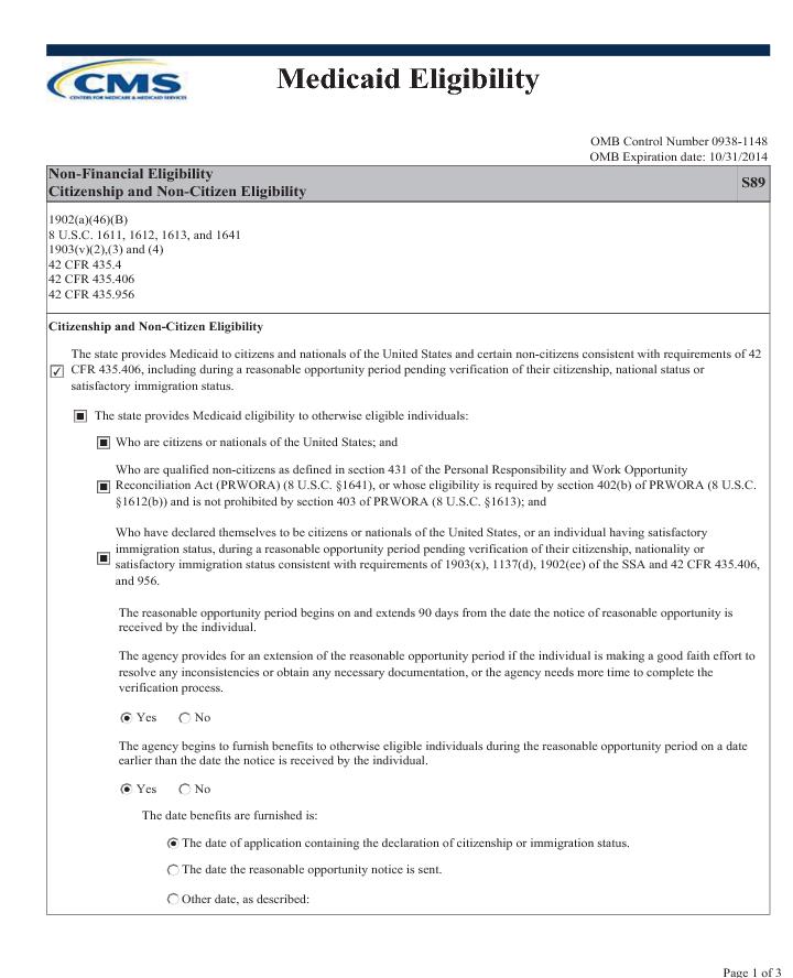 State plan page S89 describes the rules concerning Medicaid requirements related to U.S. citizenship and non-citizen eligibility.