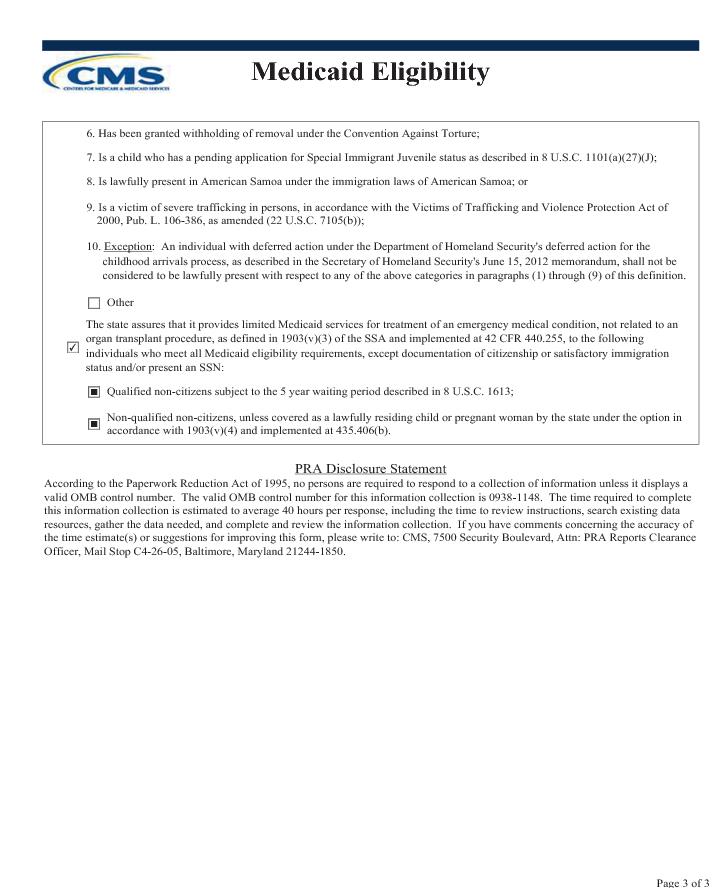 This SPA identifies the immigrant statuses eligible for Medicaid services. It also provides for a 90 day reasonable opportunity period for individuals who declare they are citizens or qualified immigrants to provide documentation. During this reasonable opportunity period, Delaware Medicaid must approve benefits if otherwise eligible.