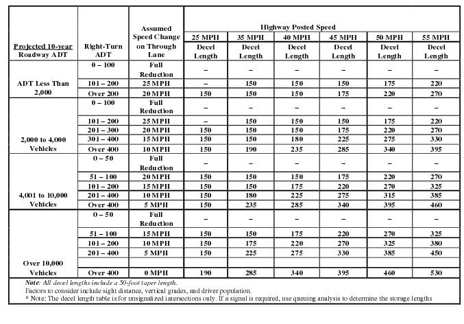 9.4.2.2.4 Any access that would reduce the optimum highway bandwidth if a traffic signal were installed shall be limited to right turns unless it meets the three numbered requirements of Section 9.4.2.