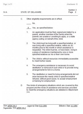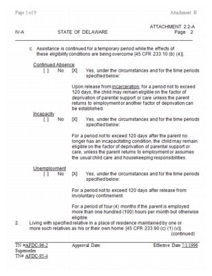 In fulfillment of the state plan requirements of §402(a) of the Social Security Act, Delaware submits this state plan to renew its status as an eligible state.