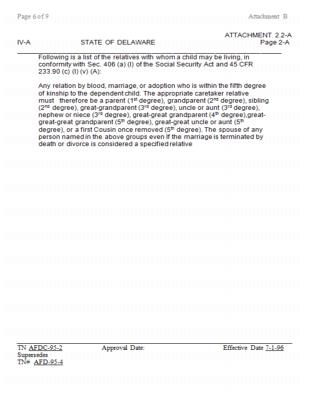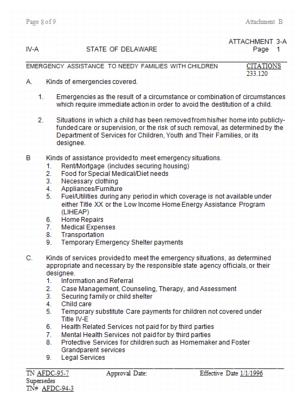 The TANF standards apply to all benefits and services provided to needy families except for those listed below, for which Delaware has established separate need standards.