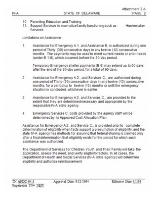 Delaware will continue to provide services to families as approved under Parts A and F of Title IV of the Social Security Act as in effect on August 21, 1996. Delaware defined a comprehensive services program under the AFDC-EA service component and intends to continue to fund these services. Federal TANF funds will be used under this provision. The approved plan that was in effect on August 21, 1996, is included on the following eight (8) pages for reference.