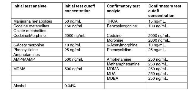 4.3 Employees subject to drug testing shall be tested using at a minimum a seven-panel protocol testing plus alcohol screening for the following: