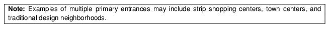 Note: See Figure 5-14 – Access Requirements – Parking Between Building & Fire Lane with Sidewalk But without Curb with Multiple Primary Entrances