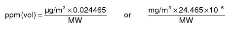 1.7 Air quality standards are expressed in metric units with the approximate equivalent volumetric units in parentheses. The standard conditions for air ambient monitoring is 760 mm. Hg and 25oC. The formula to convert metric units to parts per million (ppm) is:
