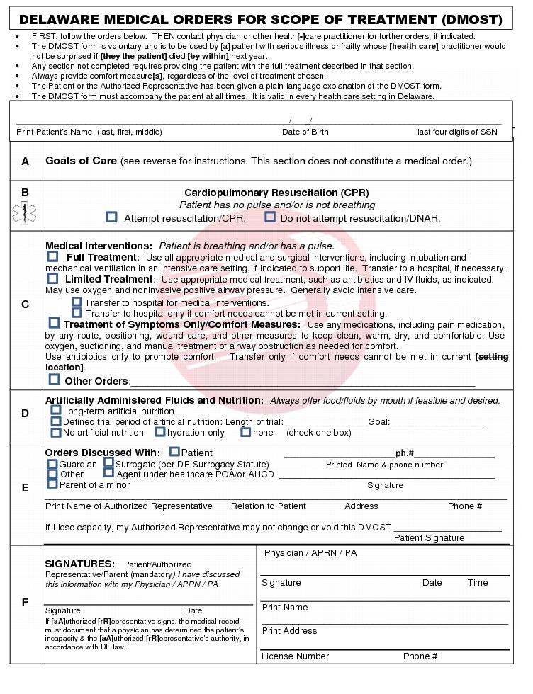 Delaware Medical Orders for Scope of Treatment (DMOST)