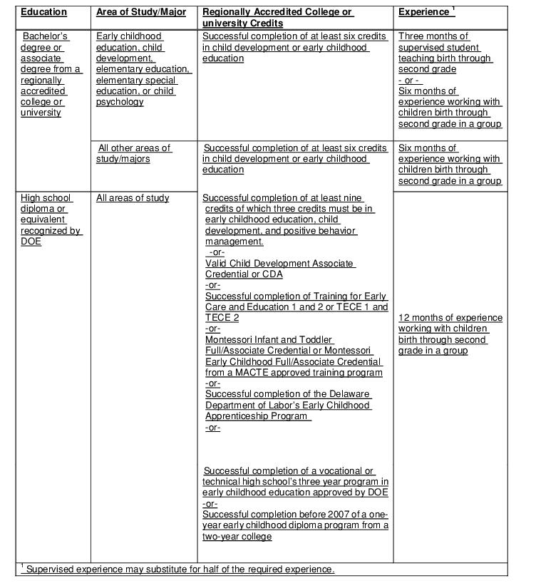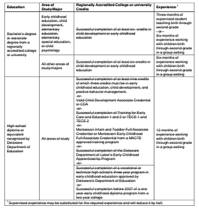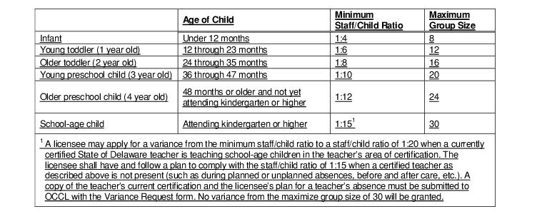 101 DELACARE: Regulations for Early Care and Education and School-Age Centers