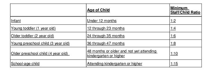 87.5.6 A school-age aide will count in the staff/child ratio only during the first 12 months of employment at a single center or affiliated center.