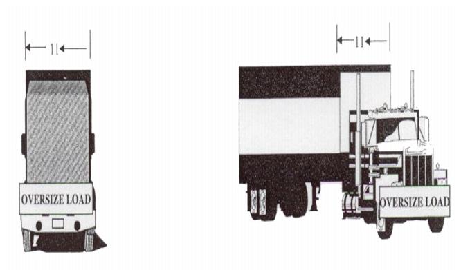 2.1.4 The maximum overhang shall not exceed 6 feet beyond the rear of the vehicle and no load shall be permitted to touch or drag upon the roadway regardless of permissible overhang. No vehicle or combination of vehicles shall carry any load extending more than 3 feet beyond the front thereof.