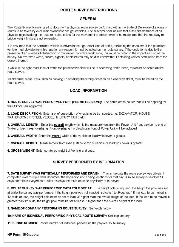 A.2 HP Form 16 State of Delaware SUPERLOAD Route Survey