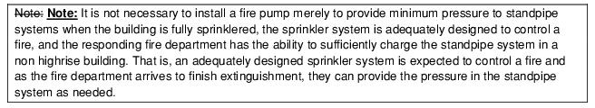 Note: This section would not apply to new construction, but only to existing developments with the current infrastructure unable to provide adequate fire protection in accordance with these Regulations. Any agreements, alternatives, variances or exceptions granted prior to the adoption of this change shall remain in effect. |