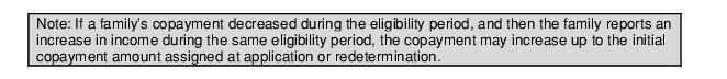 A. B. The copayment will not increase beyond the initial copayment amount during the eligibility period if the family reports an increase in income.