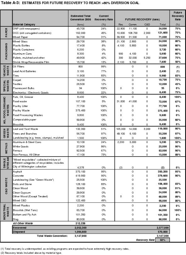 Table A-6: INTERIM GOALS (2015) FOR RECYCLING AND DIVERSION