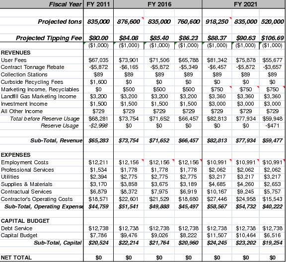 Table A-7: PROJECTED LANDFILL TIPPING FEES