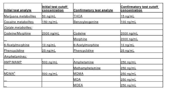 4.1 Testing for the presence of drugs in an Employee's system and the handling of test specimens shall be conducted in accordance with guidelines for the collection, chain-of-custody procedures, laboratory testing, and Medical Officer Review procedures contained within the Mandatory Guidelines for Federal Workplace Drug Testing Programs published by the Substance Abuse and Mental Health Services Administration (SAMHSA). http://workplace.samhsa.gov/DrugTesting/Level_1_Pages/mandatory_guidelines5_1_10.html (49 CFR Part 40).