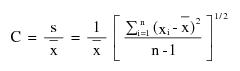 "Coefficient of variation (C)" means the ratio of the standard deviation to the mean value of a population of observations. It is estimated using the following equation: