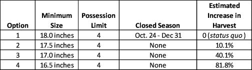 Note: Closed season to be determined in combination with minimum size, but it is limited to options one through four listed in the below “Table of Management Options”