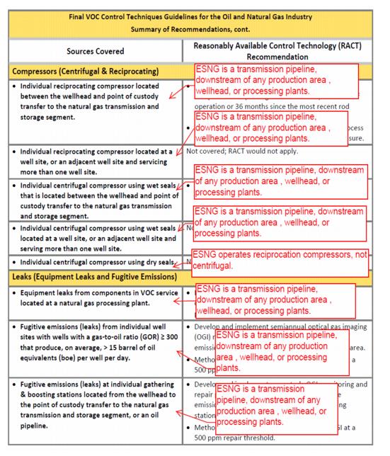 (2) Eastern Shore Natural Gas Company, identified in the ICR Part 2, is not an oil or natural gas production and processing facility, but has two boosting stations (Permits#: APC-1996/0895-Operation, and APC-2005/0031-Construction/Operation) as part of the local natural gas transmission and distribution system. Upon request, the company provided the Department its status regarding the 2016 Oil and Gas CTG RACT summary sheet (see Attachment 2).