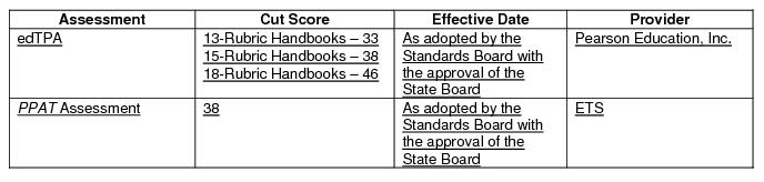 3.4.44.3.4 When applicable and available, achieve a passing score on an approved performance assessment as specified in Section 20.0 of this regulation.; A performance assessment is applicable and available when adopted by the Standards Board with approval of the State Board.