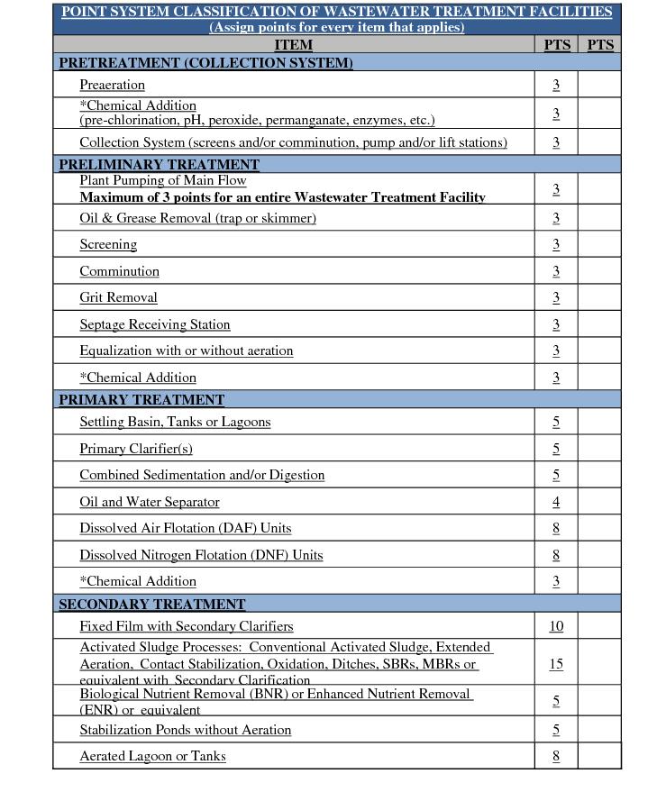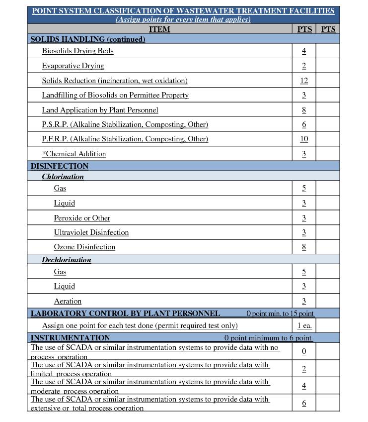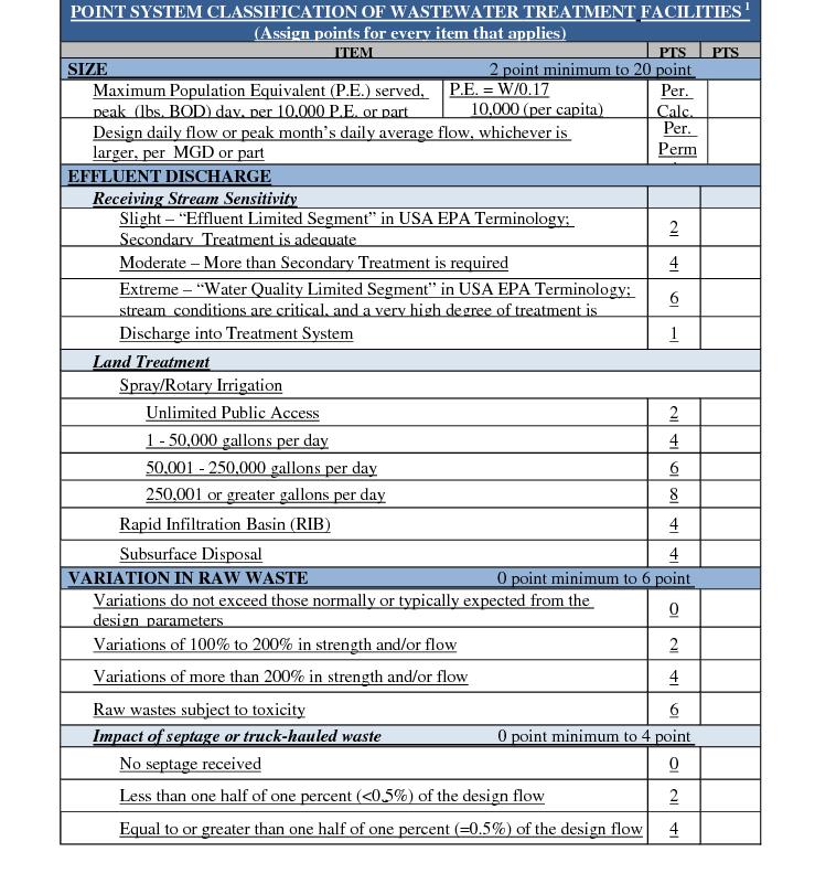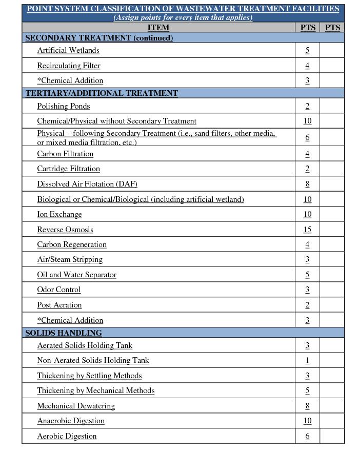 POINT CLASSIFICATION OF WASTEWATER TREATMENT FACILITIES