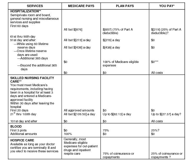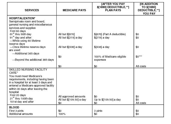 *** NOTICE: When your Medicare Part A hospital benefits are exhausted, the insurer stands in the place of Medicare and will pay whatever amount Medicare would have paid for up to an additional 365 days as provided in the policy’s “Core Benefits.” During this time the hospital is prohibited from billing you for the balance based on any difference between its billed charges and the amount Medicare would have paid.