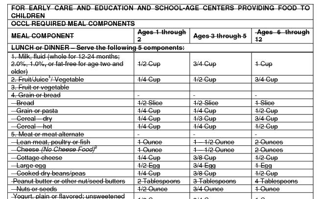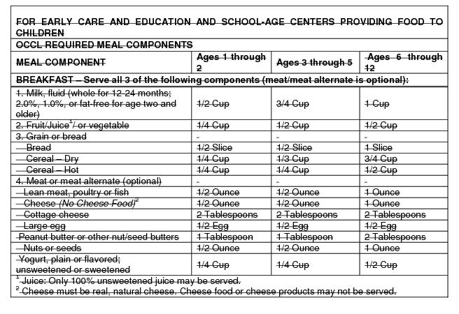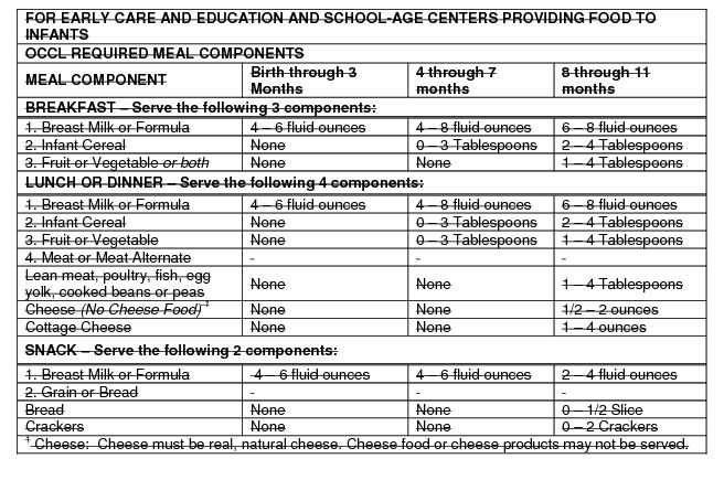 FOR EARLY CARE AND EDUCATION AND SCHOOL-AGE CENTERS PROVIDING FOOD TO INFANTS | |||